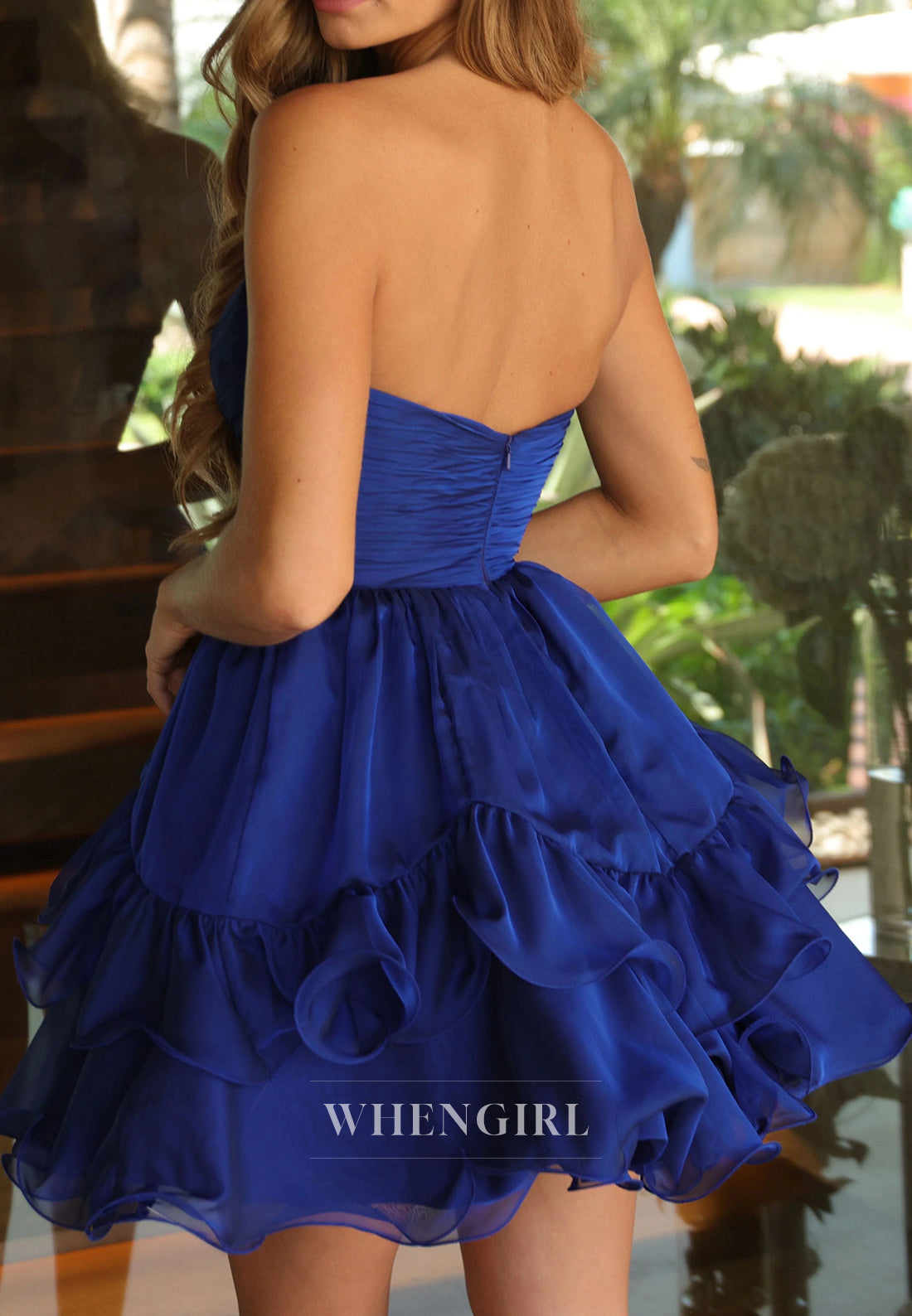 A-Line Sweetheart Sleeveless Pleated Ruffles Short Homecoming Dress